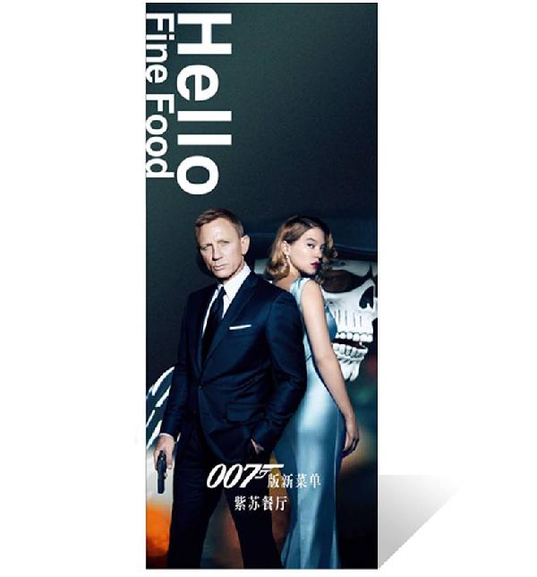 结果一换就刹不住车了,顾客反响特别好。2015年又正好是个电影年,紫苏跟着陆陆续续做了碟中谍版、速度与激情版、超能陆战队版菜单,最后以007幽灵党收尾。007版被认为是最出彩的,那一版菜单基本奠定了紫苏在菜单创意上的江湖地位。