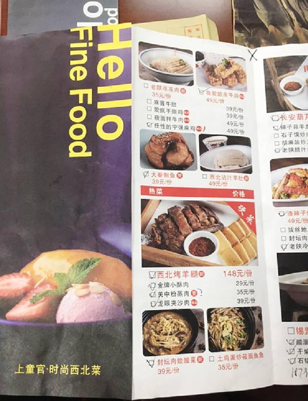 菜单在呈现上,有大图有小图,有的只显示菜名。上大图的都是这个架构里主推的,会被标记为“硬菜”,它突出品牌的定位,是从颜值、味道、利润,传播等几方面综合考察的结果。这个引导是非常有效的,比如换张照片或者换个菜名,效果就不一样。 张翀举例,去年冬天他们想卖羊腿,其实这道菜原来一直在菜单上,但那时一天只卖三四份,因为产品本身品质是没问题的,他们就拍了一张很好看的照片,放到热菜主推的位置,结果一天卖到近二十份。“就是这么神奇,这么多年我们总结出来,消费者需要引导,他到你的店里,你说了算。只要想卖哪个菜,那没有意外,这道菜必须火。 ” b、 不同季节菜单构架规律不同 而且,不同的季节菜单架构上有不同的规律,冬季顾客喜欢吃重口味的,煨、炖、炸、煲的之类,主推菜就从这里面出,但春季都喜欢吃点凉的,爽口的。 比如,上童官2017年菜单上,拔丝地瓜和龙眼加沙肉、莜面拌牛肉都已经撤掉了。“这些都是甜品、甜菜,夏季的时候,这些会放的很重,所以现在要下去,从现在起开始过渡。”有些菜进入缓冲阶段后,菜单上就去掉照片,只保留菜名,下一版上,可能连菜名也没有了。