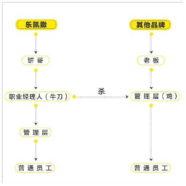 乐凯撒的职业经理人团队战略 事实也恰恰证明了,高端人才是提升企业效率的不二法门。 试问,你的 IT 总监能在和腾讯的斡旋中赢得百万净利润吗?你的采购总监能在一个月内将原料成本降的比代理商价格还低吗?诸如此类。 饼哥总爱说,“乐凯撒想做到领先行业一代,而不只是一两年”,相信这不是梦。 禄鼎记:“情感共鸣+内部晋升”战略对于目前只有 5 家店的禄鼎记,创始人华哥坦言,还没有制作标准化的企业 SOP,但在团队管理上,他有自己的理解。 禄鼎记的团队被命名为“禄战队”,大家不是上下级关系,而是战友;公司的管理层都没有独立的办公室,通通开放式办公;食堂也是一样,大家都一起吃饭,吃的都是同样的,谁都不能搞特殊。 说起来,这和海底捞的“把员工当人”异曲同工。 华哥外表强悍,但心思特别细腻,很能设身处地的为员工着想,他总是说,“首先要自己能做到,否则你有什么资格要求别人,开第一家店的时候,我也会去打扫厕所,我要让员工看到,我什么都愿意做,我希望是这种以身作则,能够感染到他们。” 在禄鼎记,内部晋升为主,人人都有机会,只要够努力,就能不断晋升,现在的几个店长都是从服务员提拔上来的。他希望通过这种方式让基层员工能够“看得见未来”。